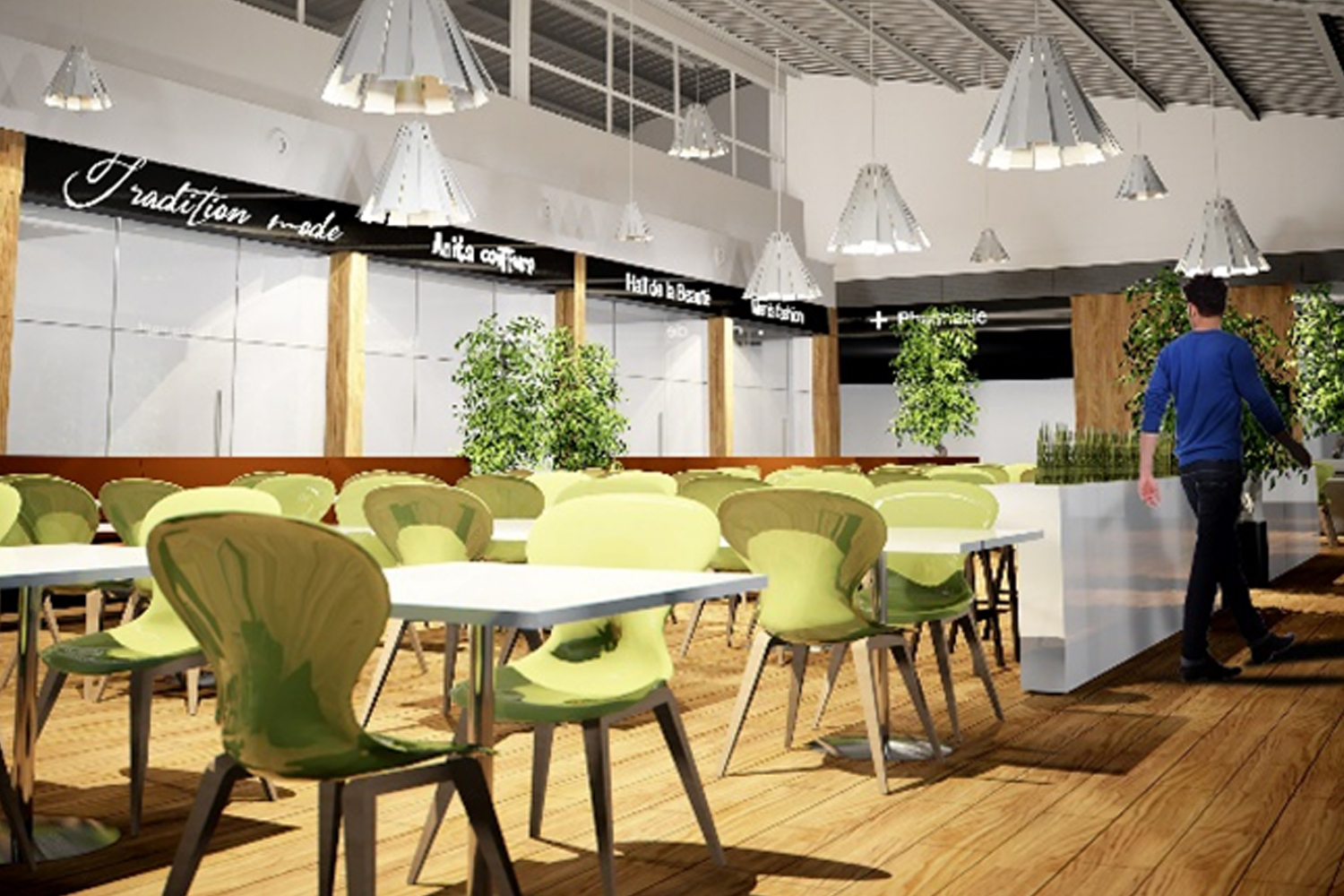 As and additional service, we designedthe interior decoration of the food court atrium.